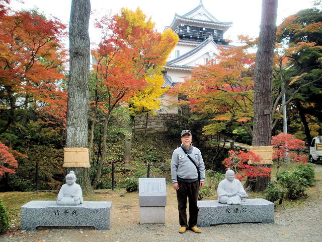 3/26鉄道を利用しての福井県は丸岡城を目指しました。朝から雨模様にも負けず傘を片手に我ながらよくやります。天気予報では台風なみの風と報ぜられていたので、道中十分警戒しながらの城巡りになりました。丸岡城は日本最古の天守閣現存なので非常に楽しみにしていました。やはり予想通り雲行きが悪くJR福井駅は既に雨でした。駅からは京福バスで約40分、一時の雨しのぎになりました。現地バス亭の傍には桜祭りと書かれた看板があり、そして城郭への階段が見えてきました。いよいよ待ちに待った瞬間です。うーん成程古そう!天守閣の階段もかなり急な造りでロープを蔦っての登りで、年配の方は少し大変です。え、「私」十分大丈夫?さて丸岡城は福井県坂井市丸岡町霞にあった城で、別名霞ヶ城とも呼ばれます。江戸時代には丸岡藩の藩庁でした。霞ヶ城の名称は幾つかの城にも類似があり、山形城や二本松城もそう呼ばれています。天正4年(1576)織田信長の家臣で越前のほぼ一帯を領していた柴田勝家の甥である勝豊(かつとよ)が築城し、その後居城だった豊原寺城(とよはらじ城)から移りました。織田信長から豊臣政権を経て関ヶ原の合戦以降に徳川家康の領地となり、丸岡藩として成立したのは寛永元年(1624)本多成重(ほんだなりしげ)が福井藩より独立し大名に列した時です。元禄8年(1695) 4代本多重益(しげます)の治世に丸岡藩でお家騒動が起こり、幕府の裁定により改易となりました。代わって有馬清純(きよすみ)が越後国糸魚川藩より5万石で入城し、以後は有馬氏丸岡藩6代の居城となり明治維新を迎えました。運よく桜も満開で良い時間を過ごせました。しかし帰路は予報通り強風によりJRの運行に支障をきたし、夜遅くの帰宅になりました。教訓天気予報を馬鹿にしてはいけません。見どころは何と言っても天守閣、歴史民俗資料館、丸岡公園。アクセスは北陸本線「福井駅」より京福バス「丸岡城」まで40分