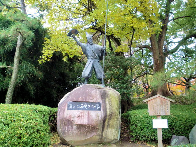 私は名古屋在住なので名古屋城は既に何度か訪れた事があり、また仕事でもよく見かける景色でもありましたので、特に何かを意識して訪問する事もありませんでした。しかし百名城スタンプ・ラリーに参加してからは、少し歴史的な物事に多少興味を持てる様になりました。改めて本日2012/12/02 訪問してみます。城内では最近流行りのおもてなし隊が日替わりで、イベントや接客を務め戦国ブームを盛り上げ、お城への思いを再認識して頂こうと観光客を楽しませています。私も鎧甲冑の衣装に興味はありますが、着用して動ける年齢でもないので、ここは若いイケメンのお兄さんに譲りましょう。さて名古屋城ですが現在の天守閣は1959年昭和34(1959)鉄筋コンクリートにより復原されたもので、昭和20年の空襲で焼失を免れたのは西南隅櫓、東南隅櫓、西北隅櫓(清須櫓)、表二の門、東鉄門、西鉄門です。名古屋城本丸御殿は現在復元中で2017には完成する予定です。名古屋の歴史は古くは那古屋と書かれ、戦国期の城は那古屋城でした。那古屋城を築いたのは駿河の戦国大名今川氏親(うじちか)で、大永年間(1521〜1528)に氏親の末子の氏豊(うじとよ)を置いたのが初めと云われています。しかし氏豊は織田信秀(のぶひで(信長の父))に城を奪われ、信秀は生後まもない吉法師(きちぼうし(信長))をこの城に置きましたが、弘治元年(1555)信長が城を清洲に移すと共に廃城となりました。その後慶長12年(1607)徳川家康9男の義直(よしなお)が清洲城に入りましたが、清洲城の城地狭くまた水害の恐れもあった事から、新たに城を築く事となり、選ばれたのが期那の城地だったのです。1610年家康は豊臣恩顧の大名20人に名古屋城の普請(ぶしん(土木工事))を命じ、天守閣は2年後に出来あがりますが、二の丸御殿を含めての完成と言う事であれば、大坂冬と夏の陣を挟んで元和6年(1620)頃まで大規模な工事が進められた事になります。名古屋城がこのように豪壮なのは家康の子の居城であるだけではなく、大坂方への備えとして築かれた事を意味しています。尾張の徳川家は61万石余を領し、紀州と水戸の徳川御三家の一つとして義直から16代義宜(よしのり)まで続き明治維新にまで至ります。見どころは天守閣歴史資料館、二ノ丸庭園、名城公園。アクセスはJR「名古屋」駅から市バス「市役所」より徒歩約15分