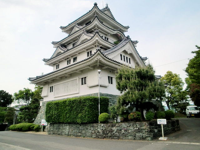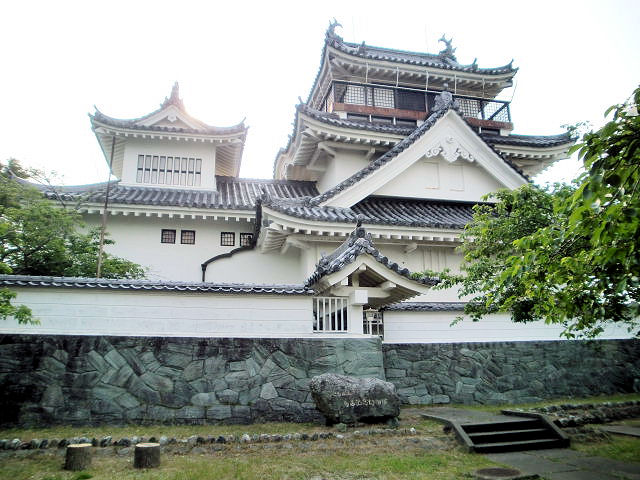 2013/05/15大歩危(おおぼけ)から小歩危(こぼけ)を経て、R319を四国中央市川之江城に向って車を進めます。アナログマップを片手に旧街道と思いますが、走行いやはや、私の車で道幅を占める状態な難所だらけで、これこそ大歩危ならぬ大走危です。この道路は余りお薦めしたくありません。事故になる可能性大です。取り敢えずR32でJR土讃線の「阿波池田」駅手前まで行き、R192経由で向かった方が安全に走行できます。狭い山間の道をなんとか潜り抜け、平成の合併で出来た四国中央市の川之江町に辿り着きました。祖谷渓から所要時間1.5時間位掛かります。目標捜しは基本的に地元の人に聞くのが一番で、確認を兼ねて尋ねてみました。意外と近くまで来ていたのか、難なくお城をみつけることが出来ました。沿革は南北朝時代の南朝方の武将であった河野氏の砦の一つとして、土肥義昌が1337年に川之江城を築きました。その後戦国時代には城主は妻鳥友春(めとり友春)でしたが河野氏に背き土佐の長宗我部氏に通じた為、河野氏配下の河上安勝によって落城しました。豊臣秀吉の四国平定以後は、川之江地方は小早川、福島、池田、小川と目まぐるしく領主が替わりますが、加藤嘉明の時代に川之江城は廃城となりました。一柳直家が1636年に川之江藩を立藩し、城を再築しようとしましたが1642年に死亡し領地は没収され、以後天領となり再築はされませんでした。見どころは模擬天守閣、涼み櫓、桜の名所。アクセスはJR「川之江」駅から徒歩約13分