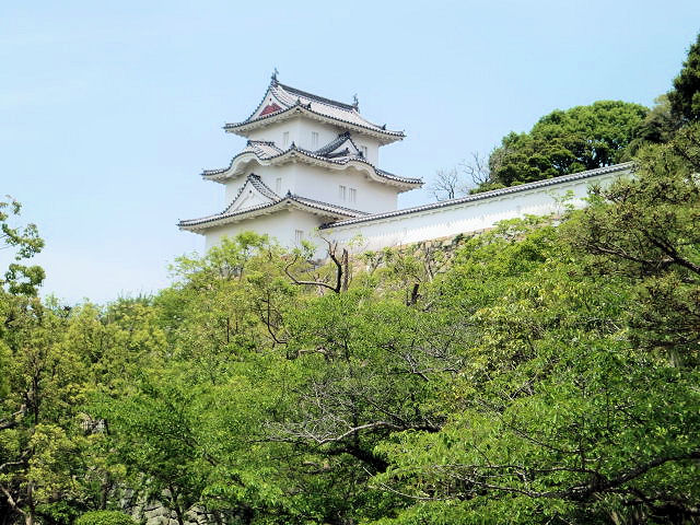 2013/05/16撫養城で今回の四国の旅が終了になりますが、決して全ての城跡と歴史に纏わる土地を回った訳ではありません。また新たに目標を定め訪問したいと思います。それでは、四国を後に鳴門北ICから淡路島の洲本城を目指します。鳴門海峡を渡る鳴門大橋での景色は絶景で、うず潮など暫く見ていたいのですが生憎止める所がないので残念です。まあ一瞬でも目に焼き付きましたから、よしとしましょう。勿論撮影は無理でした。淡路島に入ってまもなく洲本ICです。ICを下車して洲本温泉街の方角に向い、約8分で洲本城の駐車場に到着しました。あとは徒歩で約10分のはずですが、行けども行けども天守閣が見えて来ません。あるのは復旧工事の足場とそれを覆うテントのようなものしか見当たりません。実は天守閣一階部分のコンクリートに剥離箇所が確認された事で修復工事(2011/03〜)を現在行っているそうです。残念ながら天守閣を拝観する事は出来ませんでした。沿革は大永6年(1526)三好氏重臣の安宅治興(あたぎはるおき)が築城しました。治興の後は養子の安宅冬康(三好長慶の弟)、冬康死後は長男信康、二男清康へ受け継がれ、天正9年(1581)の淡路討伐で総大将羽柴秀吉に落城し、城は仙石秀久(せんごく秀久)に与えられました。江戸時代になり姫路城主の池田輝政の三男忠雄(ただかつ)が領主になりましたが城は廃城となり、岩屋城から次に由良成山城を居城としました。これは関ヶ原の戦い以降も豊臣方大名の動きを牽制する為に、徳川家と縁戚関係にある池田氏(忠雄の正室は徳川家康の孫)に播磨灘と大坂湾一帯を防衛させました。大坂夏の陣のあと徳島藩の蜂須賀氏の所領となり、筆頭家老の稲田氏一族が由良城の城代となりますが、交通の便が悪いなどの理由から1631年から1635年にかけて由良城を廃して洲本城に再び本拠を移しました。この移転は城下町ごとの大移転であったため俗に「由良引け(ゆらびけ)」と呼ばれています。見どころは天守台の三熊山からの眺望、麓の淡路文化資料館。アクセスは高速バスの洲本バスセンター行き終点より麓まで徒歩約20分、頂上の城まで徒歩約60分