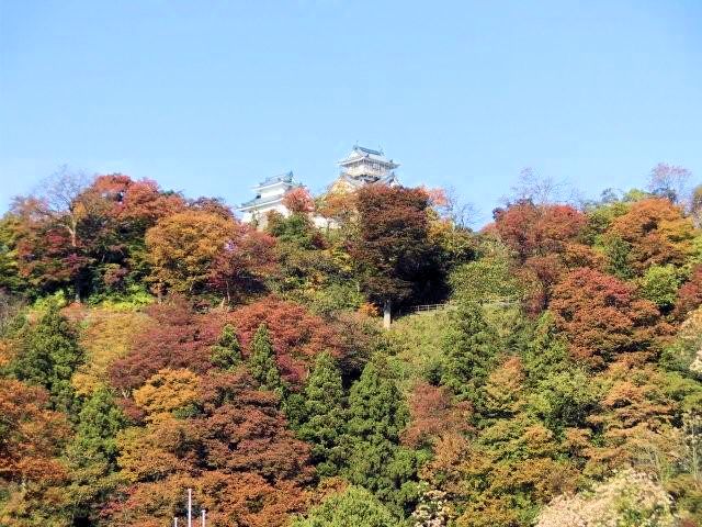 2015/11/05今回の目的地は、山城の中でも数少ない朝霧が掛かることで天空の城と呼ばれている福井県の大野城を目指すことにしました。今までに兵庫県の竹田城跡、岡山県の備中松山城、奈良県の高取城と登城するにはやや難所でしたが、大野城は比較的難易度が低そうなので問題ないと思います。自宅の出発は前回の丹後田辺城行同様に午前4時頃です。高速を使えば(1)長久手IC〜一宮JCTを経て東海北陸自動車道を白鳥ICに向うコース(2)長久手IC〜名神高速道を米原JCT経由して北陸自動車道で福井ICに向うコースがありますが、早朝出発で多少時間もあるので一般道で挑戦することにしました。勿論経費削減にも繋がります。先ずR302で清洲まで向いR22を岐阜方面に進行。途中R156に合流してそのまま白鳥へ向い白鳥からR158に変更して北西の九頭竜湖を目指します。時間の余裕があったにも関わらず、上手くいかないのが気まぐれ休憩です。なんと九頭竜湖付近に着いた時間は8時です。所要時間4時間掛かった割には残念ながら湖は霧のため全く視界0。湖畔に映る紅葉は微塵もございません。先を急ぎ雲海に浮かぶ大野城に期待しましょう。午前9時開館より30分遅れで目的地に到着。そこはなんと晴天青空高く、やや霞んで見えます。天空の城としての期待は裏切られましたが、山の頂上に毅然とした城郭を目にすることができて感謝です。標高249m 越前大野城、拝観料200円です御ゆるりと堪能して下さい。沿革は天正3年(1575)織田信長より越前一向一揆を平定した恩賞として越前国大野郡の内の3万石を与えられた金森長近が、その翌年最初に居城とした越前戌山城(いぬやま城)の近くの亀山(大野盆地の小孤峰)に城郭を築き始めたのが越前大野城の始まりです。築城に数年を要しまた。その後越前松平家が3代続いた後、天領(幕府直轄)となり、土井氏で定着するまで目まぐるしく城主が替わりました。城は安永4年(1775)に焼失し、寛政7年(1795)には天守を除いて再建されましたが、残念ながら明治維新後に破却されました。天空の城と言えば兵庫県朝来市にある2013/2/7訪問の竹田城跡(下方「竹田城跡」ボタン)がありますが、2014年に有志による「ラピュタの会」が結成され「天空の城 越前大野城」の知名度向上に努めています。また近隣には過去2013/4/18に訪ねた一乗谷遺跡(下方「一乗谷城跡」ボタン)があります。見どころは、雲海に浮かぶ越前大野城(11月〜4月の気象条件)、歴史資料館。アクセスはJR越美北線「越前大野駅」下車、ふもとまで徒歩約15分。北陸自動車道道「福井IC」から国道158号を東へ約1時間。