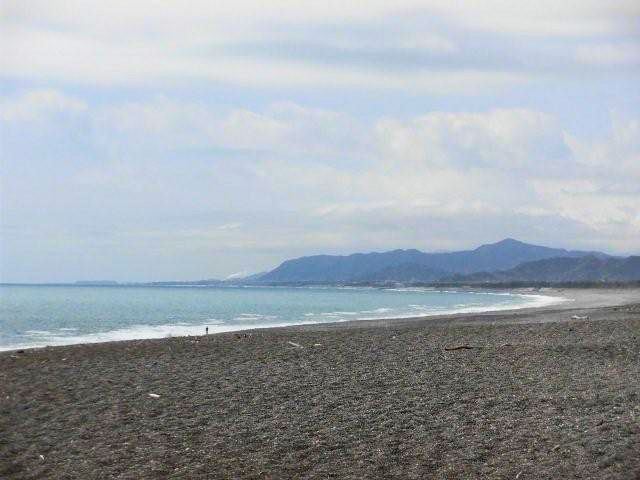 2016/04/05「獅子岩」は鬼ヶ城から約10分(徒歩35分)南方に位置します。「七里御浜」(しちりみはま)に面した岩場にそびえる巨岩が獅子の形に似ていることから名がつき、国の天然記念物として名勝にも指定されています。また近隣に流れる井戸川の上流に、今回は訪問出来ませんでしたが、大馬神社(おおまじんしゃ)と言う神社がありますが、この「獅子岩」を狛犬に準えて境内に狛犬は存在しないのだそうです。そしてこの「獅子岩」のある「七里御浜」は鬼ヶ城の南から三重県と和歌山県の境にある熊野川(新宮川)の川口まで、七里(約21km)に渡って続く砂浜海岸になります。熊野参詣の旅人が歩いた熊野古道伊勢路として世界遺産に登録されています。本日は晴天にも恵まれ非常に良い景観をみせて頂きました。感無量です敢えて云うならば人生はタイミング、特に一期一会の旅ですから幸運に感謝します。「獅子岩」続いて訪ねた先は「花の窟神社」(はなのいわや)です。「獅子岩」から徒歩でも僅か10分程度ですが、私は車での移動です。「花の窟神社」は、巨岩を御神体として祀る神社で、国産みの女神であるイザナミノミコトを葬った御陵として、日本書紀に記されています。毎年2月2日と10月2日に行われる例大祭「お綱かけ神事」でも知られています。白く輝く巨岩を祀った古代からの聖地として崇められています。御利益は参詣者の心がけと気持ちですので、何がとは云えませんので御了承下さい。注釈> 今回の眺望画像は全てR42号線沿いからです。松本峠(鬼ヶ城のある半島)から望む景観とは異なります。見どころは獅子岩、七里御浜、花の窟神社。アクセスはJR「熊野」駅より徒歩約20〜30分。