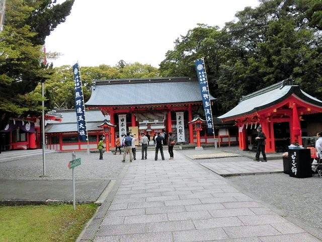 2016/04/05新宮城跡から程近い所に鎮座している熊野速玉大社を参詣して来ました。もともと今回の目的は世界遺産である「熊野古道」に関連した史跡や社寺仏閣の訪問なので、ここは外せません。概要として、熊野速玉大社(くまのはやたまたいしゃ)は、熊野三山の一社として全国に祀る数千社の熊野神社の総本宮です。夫須美(ふすみ)、速玉(はやたま)の二神を祀り、社宝1,000余点を収める神宝館や天然記念物ナギの巨木があります。特に、孝謙天皇の御世に日本第一大霊験所の勅額を賜り、熊野三山の中でも逸早く『熊野権現』の称号を賜りました。 豆知識として、熊野三山とは現在の和歌山県南部に鎮座します「熊野本宮大社」(本宮に位置)、「熊野速玉大社」(新宮に位置)、「熊野那智大社」(那智に位置)を言います。熊野三山の実際の統括者「熊野別当」とは、その役職は社僧が務め代々世襲制となっています。またその熊野別当は宗教組織の長であるだけでなく、熊野水軍などの軍事組織の長でもありました。熊野別当でもっとも有名なのが、平安時代末期の第21代熊野別当の湛増(たんぞう)です。湛増は200余艘に及ぶ熊野水軍を率いて壇の浦へ出陣し、平氏を壇の浦に沈め源氏を勝利に導きました。義経の従者であった武蔵坊弁慶は湛増の子とされ、熊野周辺には数カ所、田辺や鮒田周辺などにも弁慶が生まれたと伝わる場所があります。見どころは、熊野速玉大社、ナギの大樹、神倉神社(今回は訪問出来ませんでしたが、熊野速玉大社の摂社であり南方、約1Kmの山の斜面に巨岩とともにあります)アクセスはJR「新宮駅」より徒歩約20分。紀勢自動車道R42の「尾鷲北IC」より約50km。近畿自動車道紀勢線R42の「すさみ南IC」から70km。