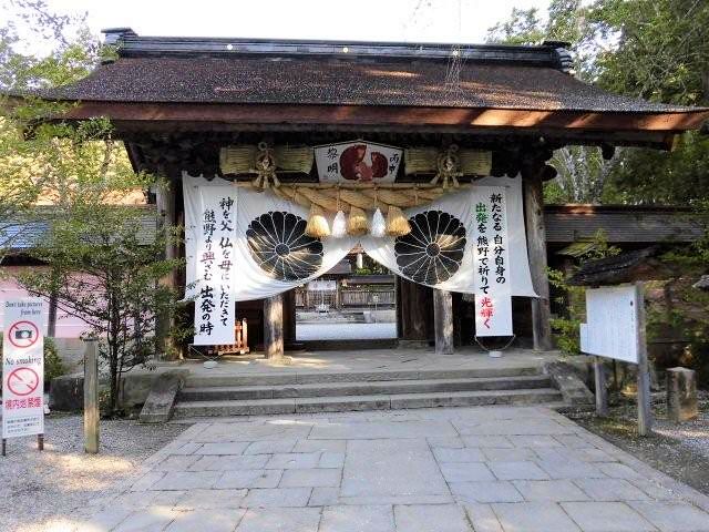 2016/04/06昨日は新宮城跡を後にし、そのまま新宮市内に宿をとりましたが、本日はそのホテルから早朝に出発です。R168号線を熊野川に沿って北上して行くかたちで本宮町を目指します。途中の熊野川の上流には巨岩の絶景を船行する事で有名な瀞峡がありますが、今回は残念ながら「瀞峡下り」はパスし目的地の熊野本宮大社に急ぎます。「道の駅」で軽い朝食を取り、午前7時過ぎには本宮大社のある和歌山県田辺市本宮町に到着しました。当初もう少し時間の掛かる旅路になると思っていましたが、意外と道路等が整備されており、順調に進むことができました。そこで少しペースを落とし、本来の旅の醍醐味を味わう事にします。熊野本宮大社は昨日訪問しました熊野速玉大社と同様熊野三山(熊野本宮大社、熊野速玉大社、熊野那智大社)の一つで、全国3000社以上を数える熊野神社の総本宮です。平安時代の上皇や貴族が憧れ訪れた熊野三山の中心的な聖地です。現在では周辺の古道を歩き温泉郷での宿泊が楽しめます。境内には江戸時代建造の上四社の御本殿があり国の重要文化財に指定されています。折角なので私も貪欲に祈願させて頂きました。勿論祈願の内容はトップシークレットです。歴史(神話)としては、主祭神は家津美御子大神(スサノオノミコト)で、歴史を遡ると古代本宮の地に神が降臨したと伝えられています。熊野川支流の三本の川の中州にあたる聖地大斎原(おおゆのはら)に社殿が建てられたのは、飛鳥時代(615)のことでした。奈良時代には仏教を取り入れ、神=仏としておまつりするようになります。先述の平安時代そして室町時代には身分を問わず、全ての人を受け入れる懐の深さから大勢の人が絶え間なく訪れ、その参拝に訪れる様子は「蟻の熊野詣」と例えられるほどでした。見どころは本宮大社 大斎原の鳥居。アクセスは紀伊田辺駅からバスで約1時間55分。新宮駅からバスで約1時間20分。阪和自動車道「南紀田辺IC」より311号線、241号線経由59km。紀勢自動車道「尾鷲北IC」42号線、168号線経由85km。