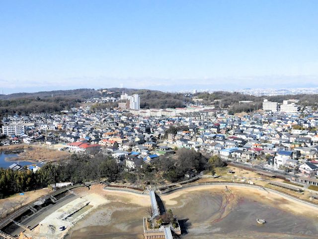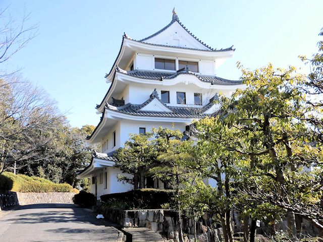 2017/01/25年が明け、今年になってからあまり出掛けていません。決して仕事が忙しい訳ではありません。だから言って出無精でもないのですが、そう、ただ寒いだけです。今日は、晴れて暖かいので散歩がてらに尾張旭市に行くことにしました。以前から気にはしていたのですが、「尾張旭市新居町」〜「尾張旭市城山町長池下」という地名の場所に模擬城があります。自宅から約6kmと近く、大きな公園に隣接していて地元では城山公園と云われています。運悪く水曜日が休みだったので模擬城には入館できませんでしたが、一見資料館に見えます。回りは小高い山といった風で大きな池もあり、スカイワードというタワーが市民の憩いの場となっています。一応確認の為タワー内に入ることにしました。9F建てで、展望台からは名古屋の街並が眺望できて、意外な収穫を得ることができました。本題の新居城(あらい城)ですが、タワー内にあった資料によれば公園全体が城跡だったと云われています。歴史としては、1361年水野又太郎良春が築いた城です。1331年「元弘の乱」(御醍醐天皇を中心にした鎌倉幕府討幕運動)に於いて、吉野金峯山寺(よしのきんぷせんじ)僧兵団の将として戦っていましたが、「建武の新政」(1334〜1336)の頃、先祖の地である志段味(しだみ 名古屋市守山区)へ帰えりました。南北朝(1336)の戦乱期に、吉野(現在の奈良県吉野郡)に呼ばれて南朝方として戦いましたが、再び帰郷し志段味の山林や原野を開拓しました。志段味城(1361)を一族に預け、新居に居を構えて田畑を開墾し、城を築いたと言われています。現在は城山公園に変わり、曲輪、土塁などが残っています。地元の英雄とも云うべき水野又太郎良春の銅像(写真有)が城山公園から徒歩10分程の名鉄尾張旭駅バスロータリ内に建てられていましたので拝見してきました。見どころはスカイワード展望台、4重4階の模擬城、城山公園。アクセスは名鉄「名古屋駅」から「瀬戸線尾張旭駅」 まで32分。そこより徒歩約10分。