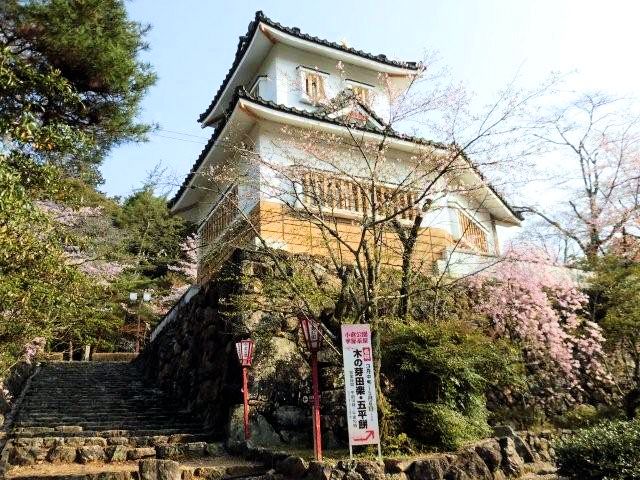 2017/04/14の朝は、晴天に恵まれ一般に云われている行楽日和です。本日はネットで検索した岐阜県の美濃市に行くことにしました。目的はやはりお城で、つまり美濃市にある小倉山城跡です。道中の行程は高速道路を使用するので短時間で到着すると思います。長久手ICから東海北陸道を経由して終着地点美濃ICへと向います。時間にして大凡1時間で、美濃市に到着したのが午前7時ごろです。此処からは国道156線で暫し走行しているうちに小高い山の上にお城を発見しました。いや、童子になった気分か歓喜が漲るようです。お城の案内版を見つつ進入していきますと、小さい櫓が眼にはいりました。道路から見えた位置とは全く違いましたが、暫く山を登ると、ありました。そしてそれはものの見事に、期待を裏切られてしいました。なんとそこは屋根の付いた展望台で、遠くから見れば天守櫓かなと思っても不思議ではない高さだったのです。ん〜残念ですが、まあ、こんなもんでしょう。折角なので、展望台から美濃の町を眺望することにしました。美濃市は私にとって意外と近場の町ではあるものの、初めて訪れる町なので色々散策することにしました。歴史としての、小倉山城は金森長近(かなもりながちか)の隠居城として築かれた城で、別名「小倉居館」ともいわれています。金森家が無嗣断絶(むしだんぜつ、無嗣断絶とは後継ぎがない意)で改易(家、土地を没収され所謂「お家お取り潰し」の意)されたことにより、わずか6年で廃城になりました。城跡には遺構として石垣と土塁が現存しています。現在は小倉公園として整備されており、本丸には模擬櫓、さらに山頂には三階建ての展望台が建てられています。また、散策に訪れた城下街は江戸時代の歴史的景観を残したまま現存しており「うだつの上がる街並み」として重要伝統的建造物群保存地区となっています。豆知識、ここで云われている「うだつ」とは、瓦屋根が語源でうだつが上がる家は裕福で上がらない家は庶民との例えから富と貧の格差を思わせる言葉となりました。見どころは、模擬櫓、「うだつ」の上がる歴史ある街並み、上有知湊(こうずちみなと)の灯台。所在地は、岐阜県美濃市泉町1571-1。 アクセスは長良川鉄道「美濃市駅」よりバスで美濃小倉公園前まで約20分。東海北陸道美濃ICより156線で美濃小倉公園まで。