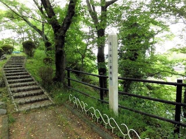 2017/05/24、今回の訪問先は、少しマイナーな史跡を訪ねました。マイナーな史跡はそれなりに長所もある訳で、まず訪れる人が少ない、如何にも観光地的ではない、そして隠れ家的な等々が挙げられます。勿論、個人の好みではあります。所在地は取り敢えず、三重県方面と云っておきましょう。自宅から高速で約1時間ですが、行程を紹介しますと長久手ICから東名日進JCT→名古屋(名古屋第二環状自動車道)→四日市JCK(伊勢湾岸自動車道)→亀山IC(東名阪自動車道)から6分の亀山城跡に到着しました。のちに述べますが、亀山城はどちらかと言えば、現京都府亀岡市の亀山城が一般的なようですが、いずれにしても混同しやすくこの京都の亀山城を亀岡城とも呼び、これから訪問する亀山城を伊勢亀山城と区別をするようです。所在地は三重県亀山市本丸町の亀山公園内に多聞櫓と石垣があります。あくまでも史跡ですので所見から云いますと建物があるだけで感動します。しかし、一般観光地としては程遠い気がします、まぁ仕方がないか、マイナーな史跡・・・。歴史の亀山城は江戸時代における伊勢亀山藩の藩主の居城でした。慶長20年(1615)に江戸幕府が制定した一国一城令により、丹波亀山城の天守を解体するよう命じられた堀尾忠晴がまちがって、ここ伊勢亀山城の天守を取り壊してしまったという逸話があります。東海道46番目の宿場町でもあることからも、亀山城は幕府の宿所としての役割があり、上洛する徳川家康、秀忠、家光などが本丸を休泊に利用しています。寛永13年(1636)には城主となった本多俊次の手で大改修が行われ、天守を失った天守台に多聞櫓が築造されました。この多聞櫓は当時の位置のまま残る中核的城郭建築として三重県下では唯一のもので、全国的に見ても現存する多聞櫓としても貴重なものです。