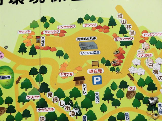 2017/09/15 本日より福島県在住の友人宅でお世話になりながら、新たな出合いを見つけにいきます。 朝食をやや遅めに取り、目指すは友人が以前からゴルフの通り道にしている街道沿いに気になる標識があるということで、石川郡浅川町方面に向かう事にしました。 JR水郡線沿いに走る国道118号線を南下する事約40分、あまり目に留まらないような「城山公園方面」の言う小さな標識です。 118号線から標識方面に狭い山道を登る事約5分、公園らしき城跡といってもよく分かりません。 紹介版には「青葉城」と記されています。 沿革の「浅川城」は文治5年に源頼朝の奥州藤原氏征伐に戦功をあげた浅利義成が秋田比内を与えられ、その子知義がこの浅川の地を与えられ、浅川氏代々の居城となりました。 戦国時代の永禄12年から天正17年にかけて数度の合戦が行われ、何れも赤館攻略のため結城氏や佐竹氏が攻めた戦です。