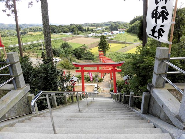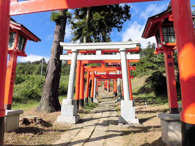 2017/09/15 本日最後の訪問先となったのは棚倉町から友人宅へ帰る途中にたまたま見つけた、ちょっと変わった稲荷神社です。 地元の人にとっては、珍しくもない光景なのでしょうが、少しサプライズだったので紹介させて頂きます。 「高屋敷稲荷神社」の境内までの参道には数多い朱色の鳥居が連なっている独特な景観があります。 歴史は、宝永年間(1704〜1711)の飢饉の際に、年貢を免除してもらったことに感激して、正徳3年(1713)に建立されました。 「享保」「明和」「天明」の飢饉を経て、信仰者が増えたようです。 現在の社殿は大正15年(1926年)10月の建立です。