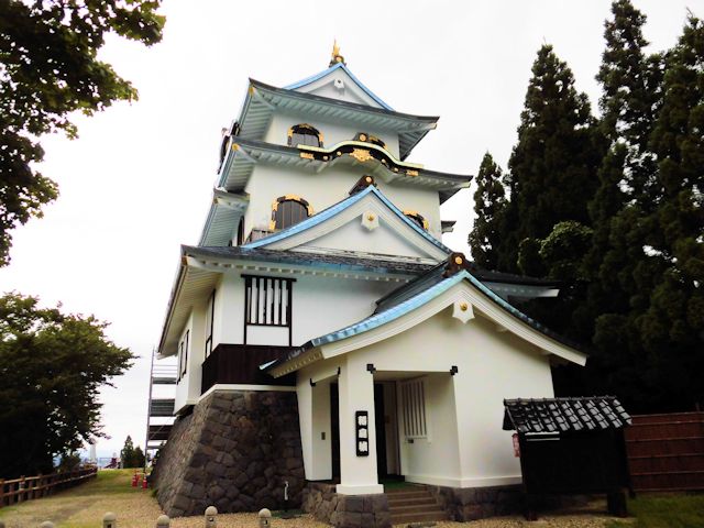 2017/09/17 湯沢市では稲庭城と稲庭うどんを堪能したあと、暫しドライブを楽しみながら、次の訪問先横手城を目指します。約1時間足らずの秋深まる車窓からの景観でしたが、目的地の横手城に到着です。 お城は山城ですが、ほぼ頂上まで車で登ることが出来、無料駐車場も完備しています。 [沿革] 横手城は三重四階建の模擬城で城内はやはり史料館として活用されています。 横手城の築城時期は諸説あり、戦国時代には小野寺氏配下の「横手氏」「大和田氏」「金沢氏」が横手城を拠点にして抵抗していましたが、これは鎮圧され小野寺氏は横手に本拠を移しました。 関原の戦い以降は佐竹氏の一族である戸村氏が城代となっていた城です。 佐竹義宣が幕府に働きかけたことにより、一国一城令の例外として破却をまぬがれた城としても知られています。 現在は横手公園として整備されており、模擬天守(横手城展望台)が建てられています。 本多正純の墓碑も建てられています。 「グルメ情報」周辺にはB級グルメとして有名な横手やきそばの店がたくさんあります。 「豆知識」本多正純の墓碑とは元和8年(1622)当時江戸幕府年寄で下野宇都宮藩主であった本多正純が「宇都宮城釣天井事件」でこの地に流罪にされ、寛永14年3月10日(1637年4月5日)にひっそりと亡くなるまでこの横手城で過ごしました。 「概要」釣天井事件とは、第2代将軍徳川秀忠が家康の七回忌に日光東照宮に赴く際、宿泊地であった宇都宮城に吊り天井を仕掛け、秀忠の暗殺を企むなどの嫌疑です。 実際は釣り天井など無かったようです。